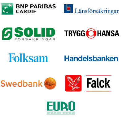 Vi har avtal med Falck Health Care, If Försäkring, Euro Accident, Länsförsäkringar, Skandia och kan efter godkännande från ditt försäkringsbolag erbjuda undersökning och behandling hos sjukgymnast, dietist, arbetsterapeut/handterapeut och kiropraktor.